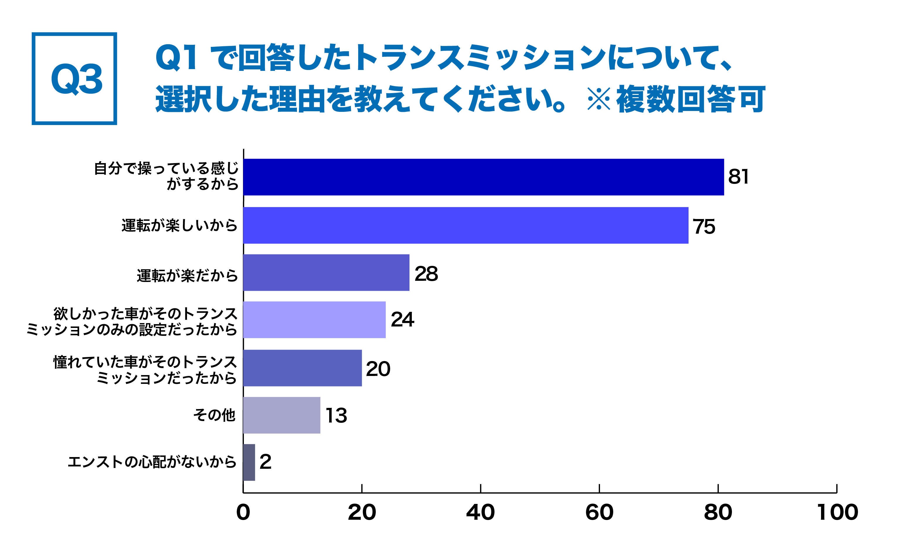 Q3.Q1で回答したトランスミッションについて、選択した理由を教えてください。※複数回答可