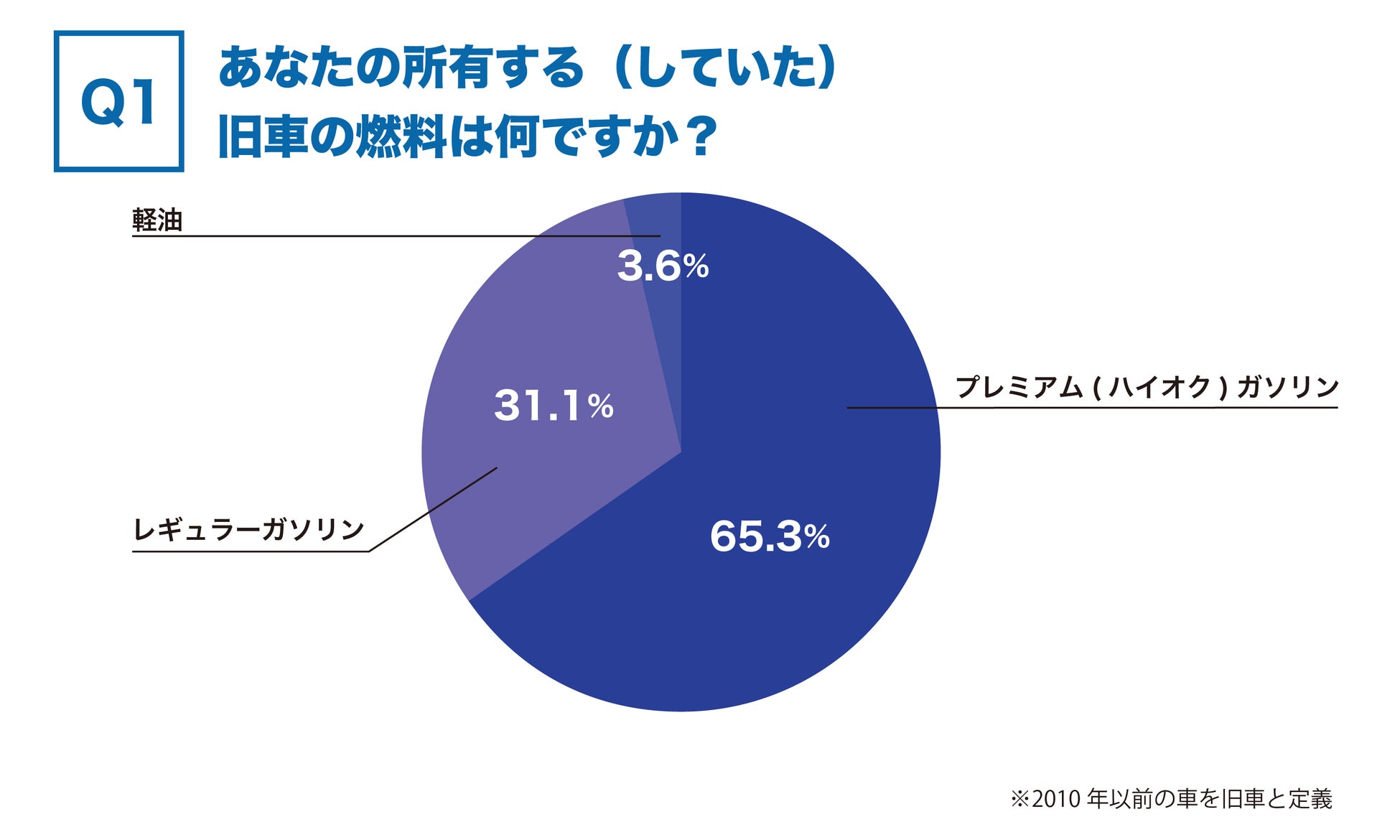 人気のある旧車はスポーツカータイプが多く、大排気量のものや高出力のものが多いため、ハイオクガソリンを使用する割合が多いことが読み取れます。