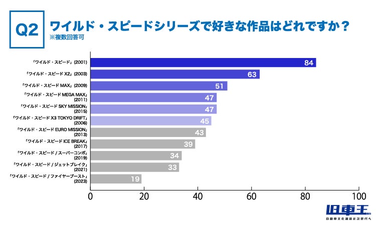 そこで旧車王では旧車乗りの方に、ワイルド・スピードの好きな作品や車種、またワイルドスピードを見たことのない方には好きな車に関する作品について選択肢を用意し、調査いたしました。